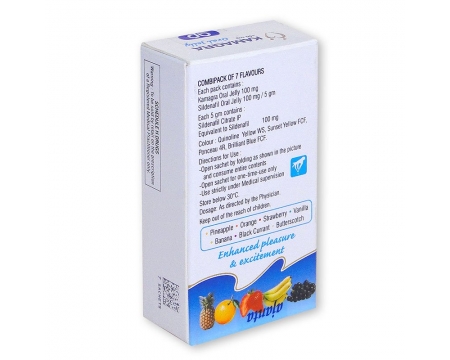 As customer reviews say, the form of sachet is very convenient and proved by men in different countries. Fruity flavor perfectly covers the bitter taste of Sildenafil which is essential for a long lasting effect of the drug. Thanks to Sildenafil Citrate, the line of Kamagra products does not differ from original Viagra and provides the same powerful effect. The PDE-5 enzyme makes the drug for potency enhancement reliable.